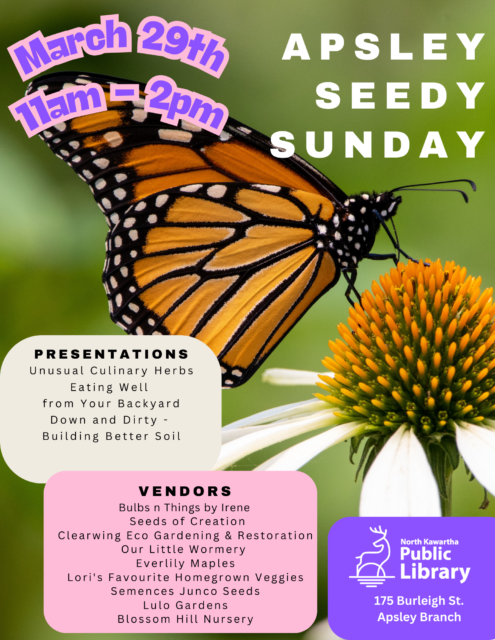 Come out to the library for Seedy Sunday! Connect with fellow gardeners, share tips and stories, and get ready for spring! Admission is free and all are welcome! At the event you can: