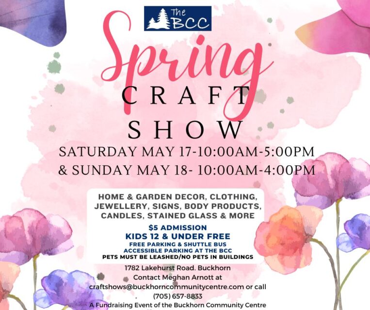 More than 70 artisans and crafters will be onsite for the annual Buckhorn Spring Craft Show on Victoria Day Weekend at the Buckhorn Community Centre. General admission is $5 and children 12 and under are admitted free of charge. The show runs from 10am to 5pm on May 17 and 10am to 4pm on May 18. For more information, visit www.buckhorncommunitycentre.com.