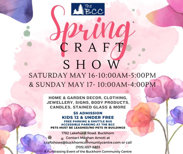 The Buckhorn Community Centre hosts a unique craft show on Victoria Day weekend, featuring artisans and crafters from across Ontario. In 2026, the Spring Craft Show runs Saturday, May 16 from 10am to 5pm and Sunday, May 17 from 10am to 4pm.