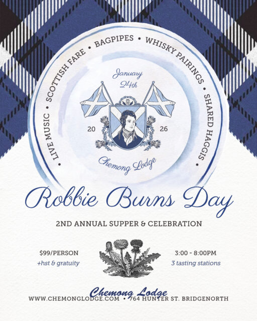 On Saturday, January 24th, 2026 Chemong Lodge hosts the 2nd annual Robbie Burns Day- a traditional Scottish hootenanny in honour of Scotland’s national Bard!
