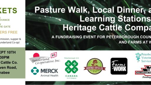 Heritage Cattle Company 690 Scriven Rd, Otonabee-South MonaghanJoin Farms at Work, Peterborough County 4H and Sunderland Co-op for a memorable night of local food and knowledge sharing! Date: Wednesday, September 10th Time: 4:00pm-7:30pm Location: Heritage Cattle Company…