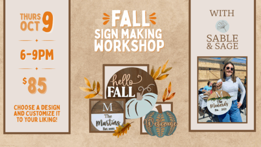 Rolling Grape Vineyard 260 County Rd 2, Bailieboro, Ontario, CanadaTime to get crafty! We’re partnering with Sable + Sage Co to host another sign-making workshop on Thursday, October 9th from 6 to 9PM! Choosing from a variety of design…