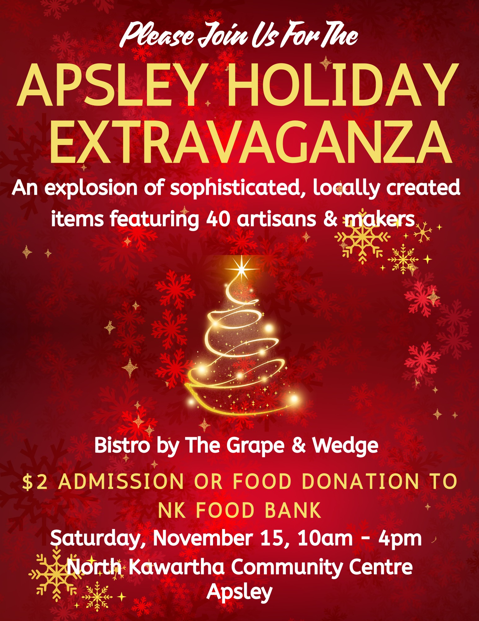 This year's Extravaganza is the BIGGEST yet! Featuring 40 artists & makers creating an explosion of sophisticated locally created items! Bistro by The Grape & Wedge. $2 Admission or food…