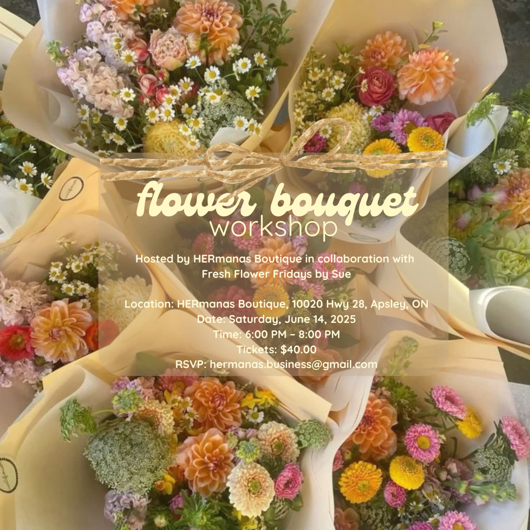 Join Fresh Flower Fridays by Sue at HERmanas Boutique for a Floral Bouquet Workshop! The perfect accent to your weekend and your cottage! RSVP by writing hermanas.business@gmail.com Can't make the…